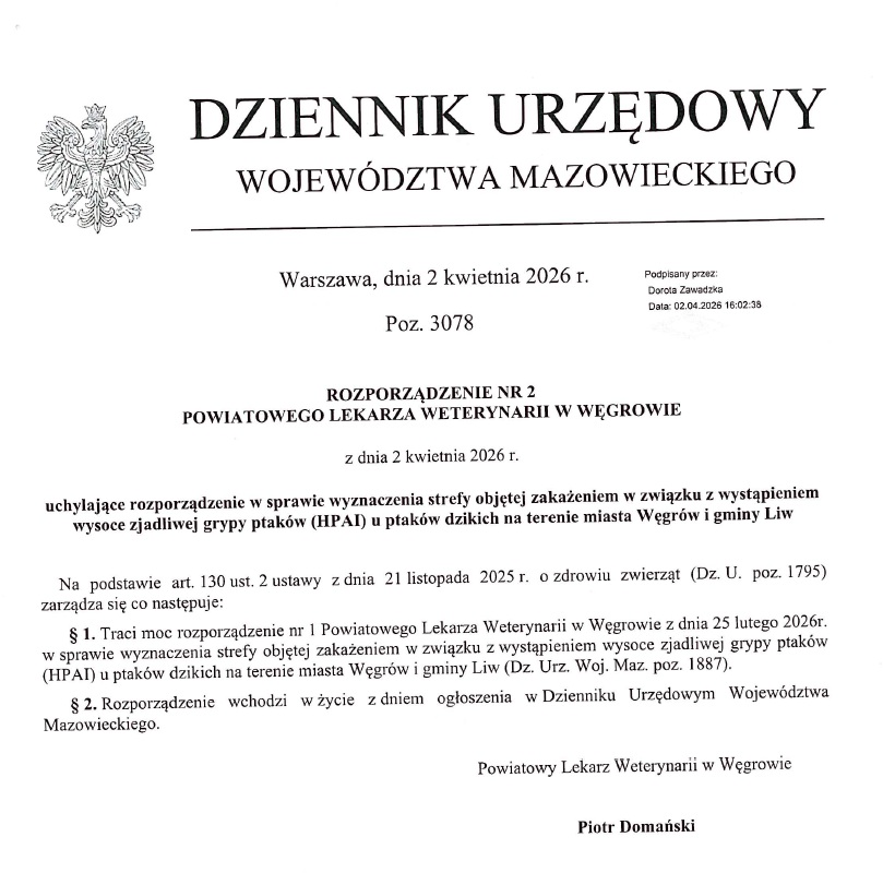 Rozporządzenie nr 2 Powiatowego Lekarza Weterynarii w Węgrowie